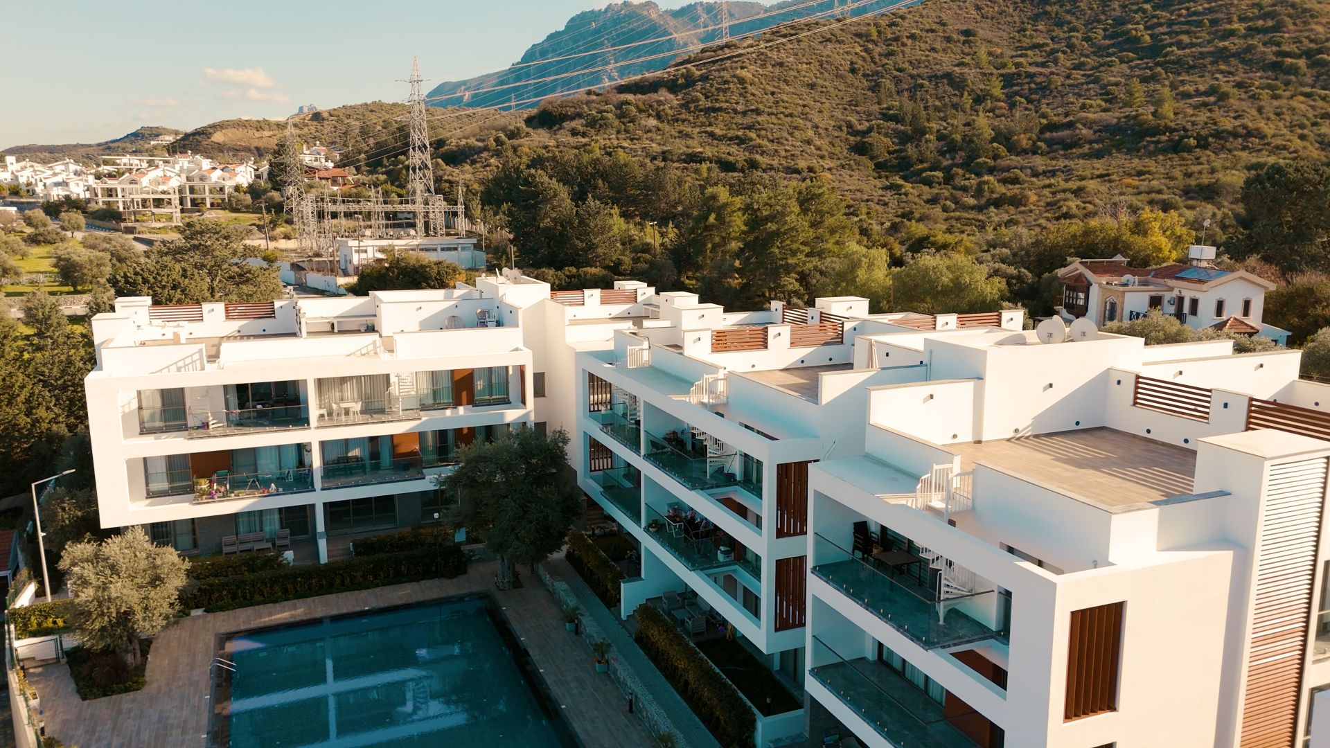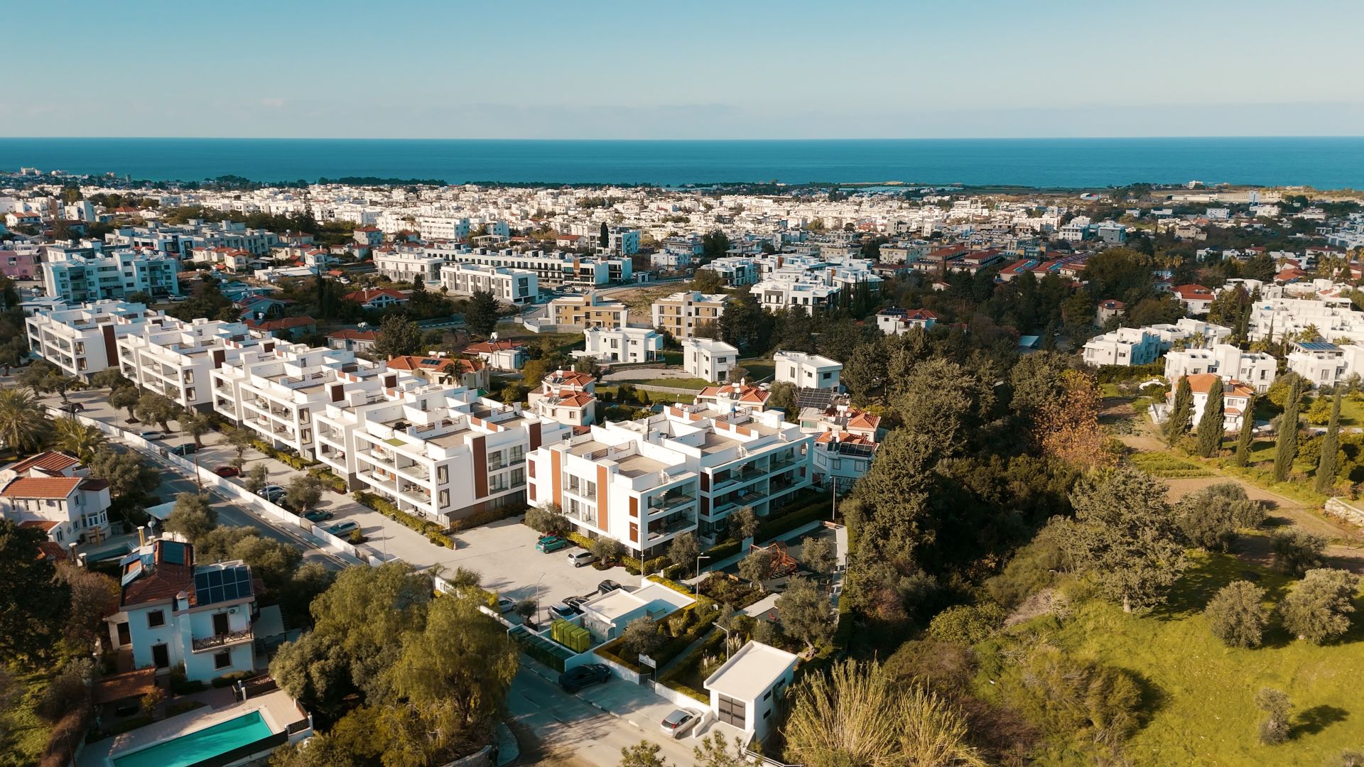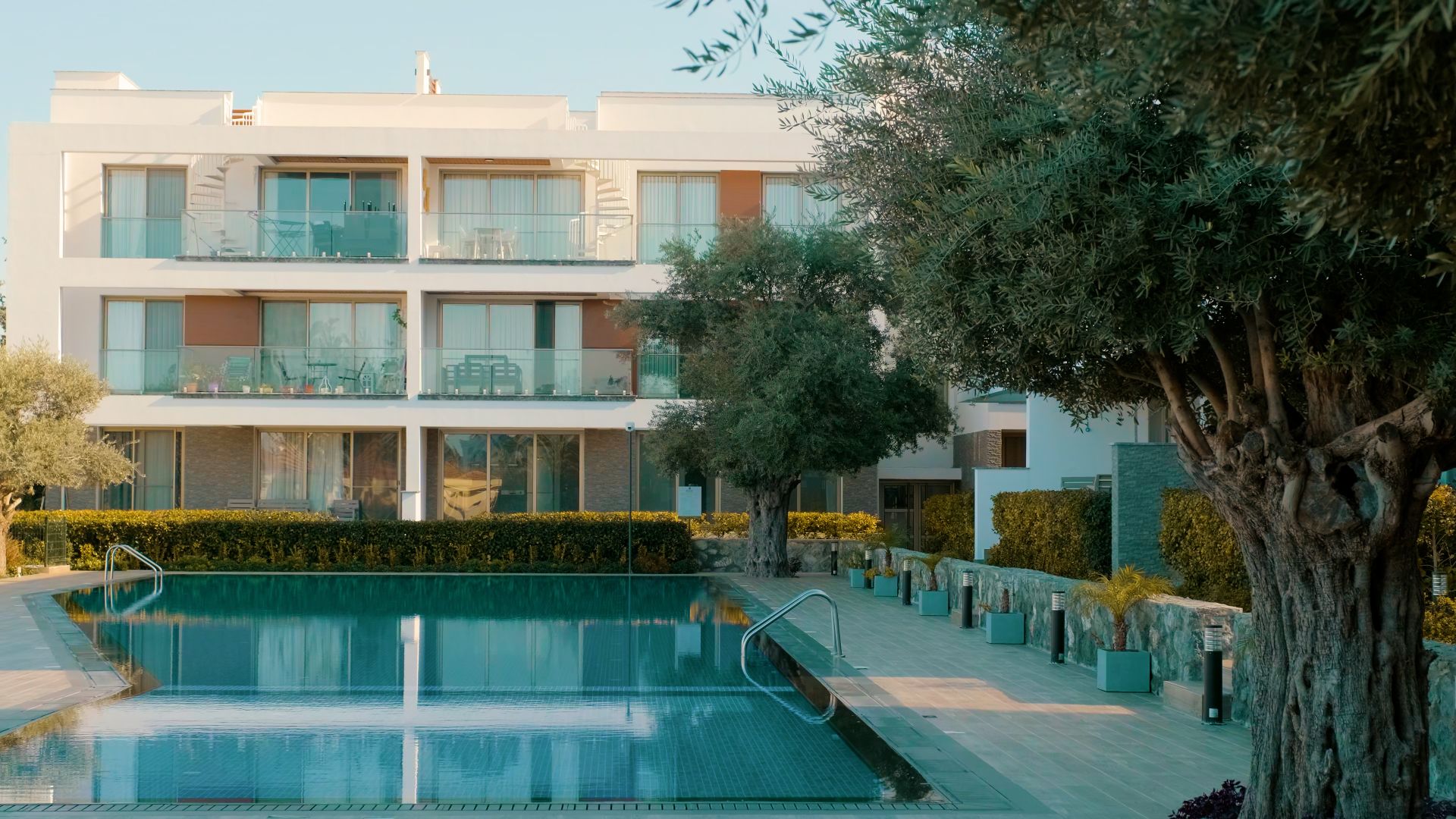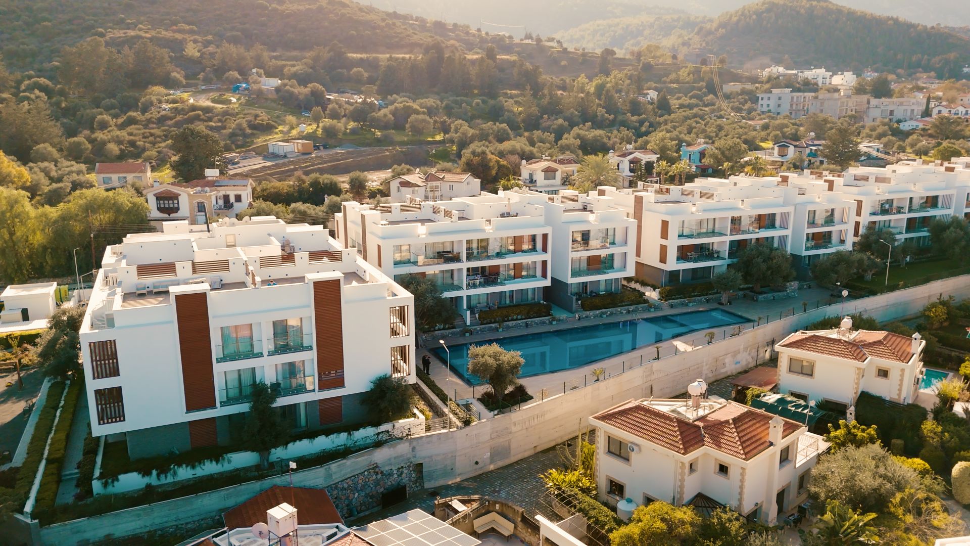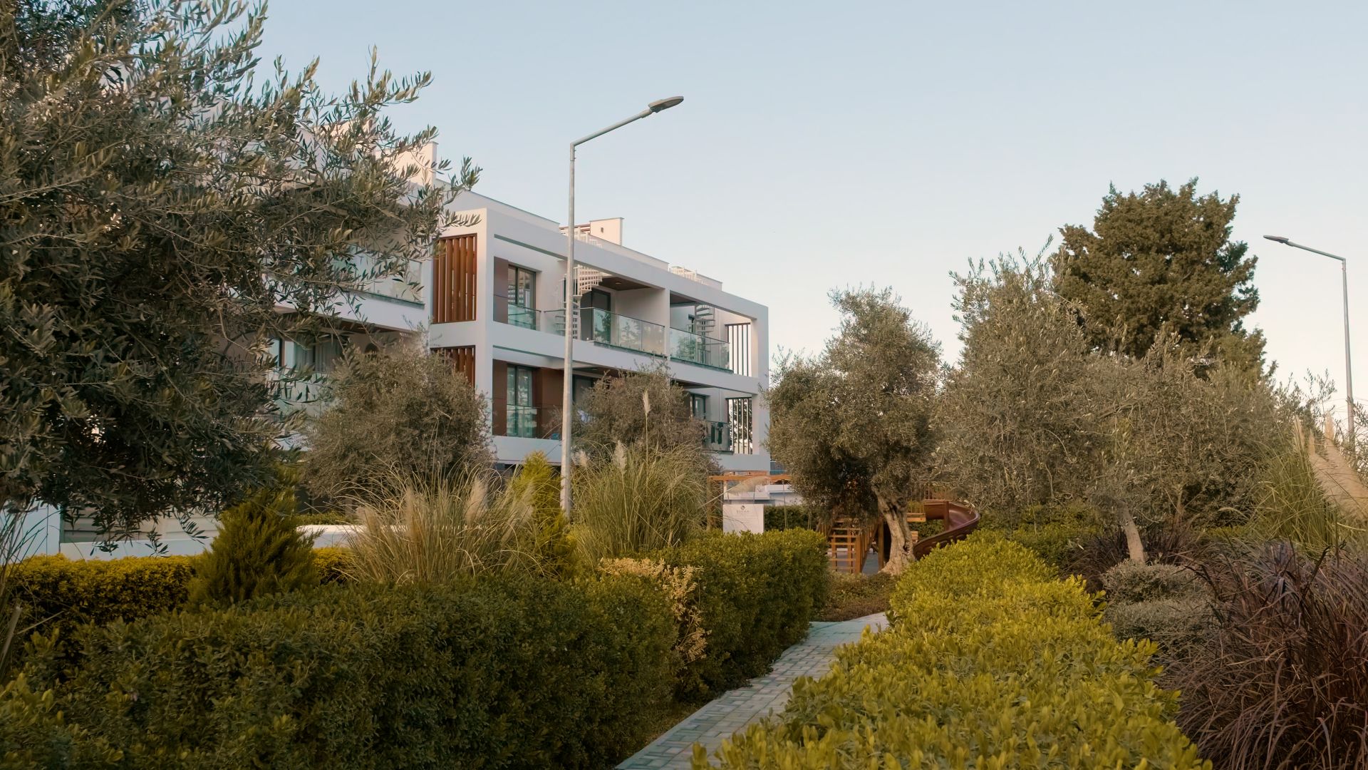 Kalitenin ve çağdaş modern mimarinin aynı çatı altında buluştuğu noktada size, Kıbrıs’ın simgesi olan etrafı zeytin ağaçlarıyla çevrili toplamda 2000m2 yeşil alan, güneşin ve havanın tadını çıkarabileceğiniz yüzme havuzu ve çocuk havuzu, sizin gözetiminizde çocuklarınızın eğlenceli vakit geçirebileceği çocuk oyun parkı gibi sosyal alanlar sunuyoruz.
